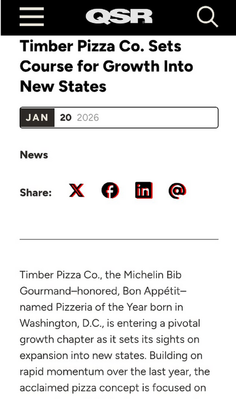 Owning a Timber Pizza Co. provides the place for friends, family and neighbors to truly become a community. Timber's vibe, award winning pizza and beverage program are perfect for family dinner, date night or a night out with friends. As we've always said "Timber is for everyone".